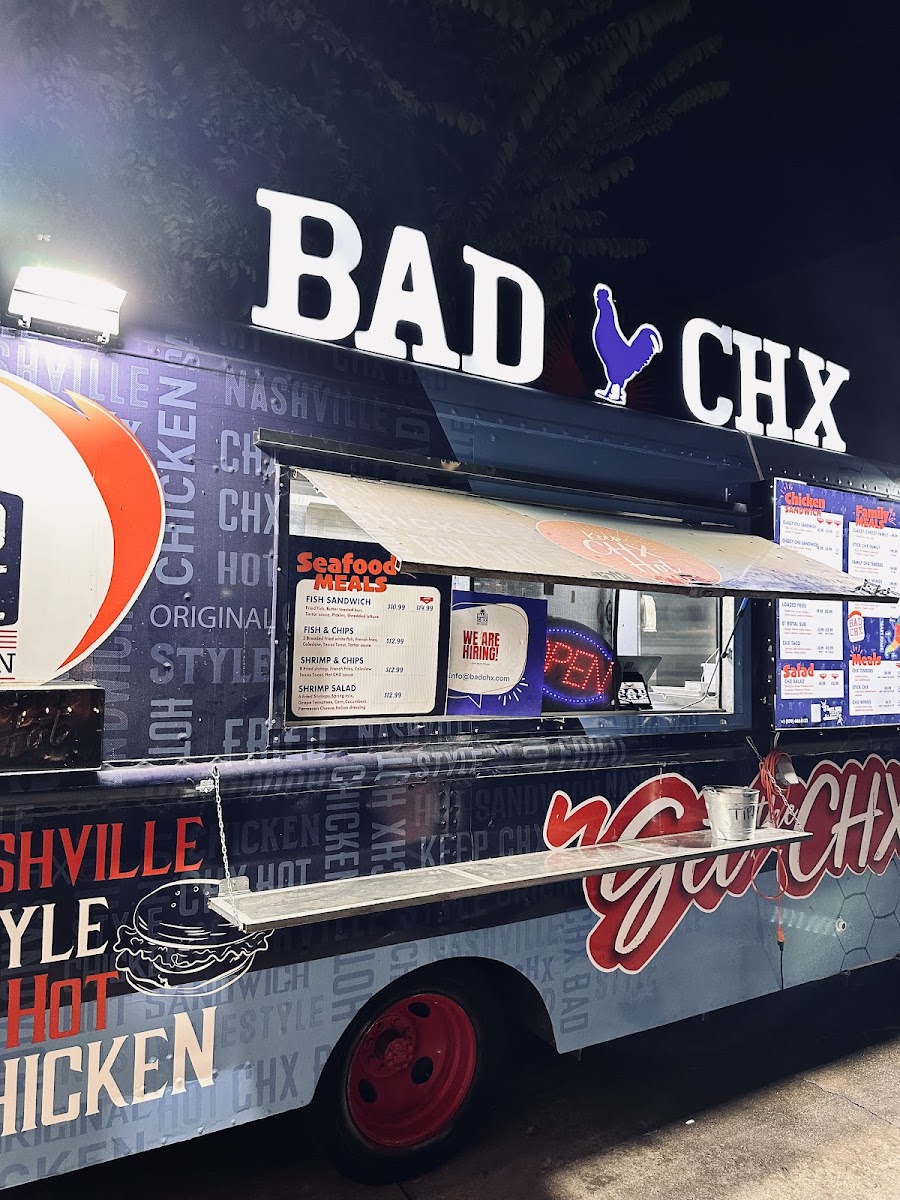 Great location. While taking gifts to my kiddos on Christmas night, I spotted Bad Chx. Since our Christmas meal wasn’t until the next day. This was a go for dinner. The owner (I assume) was very cool. He was by himself but getting the food out fresh and timely. The food was delicious and plentiful! This will definitely be one of our new go to spots!